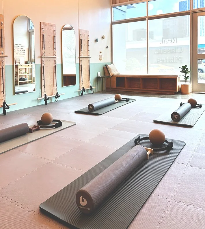 Reformer on the Mat is an advanced class designed to take your Mat practice to the next level. Using select small apparatus to replicate key movements from the Universal Reformer, this 60-minute session helps build deeper strength, precision, and control while introducing the resistance and structure of classical apparatus work. Ideal for experienced movers looking to refine their technique and challenge their coordination, this class bridges the gap between Mat Pilates and studio equipment training. Classes are 60 minutes.